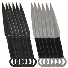 Throwing Knife Set with Six Knives, Black Blades, Green Cord-Wrapped Handles
